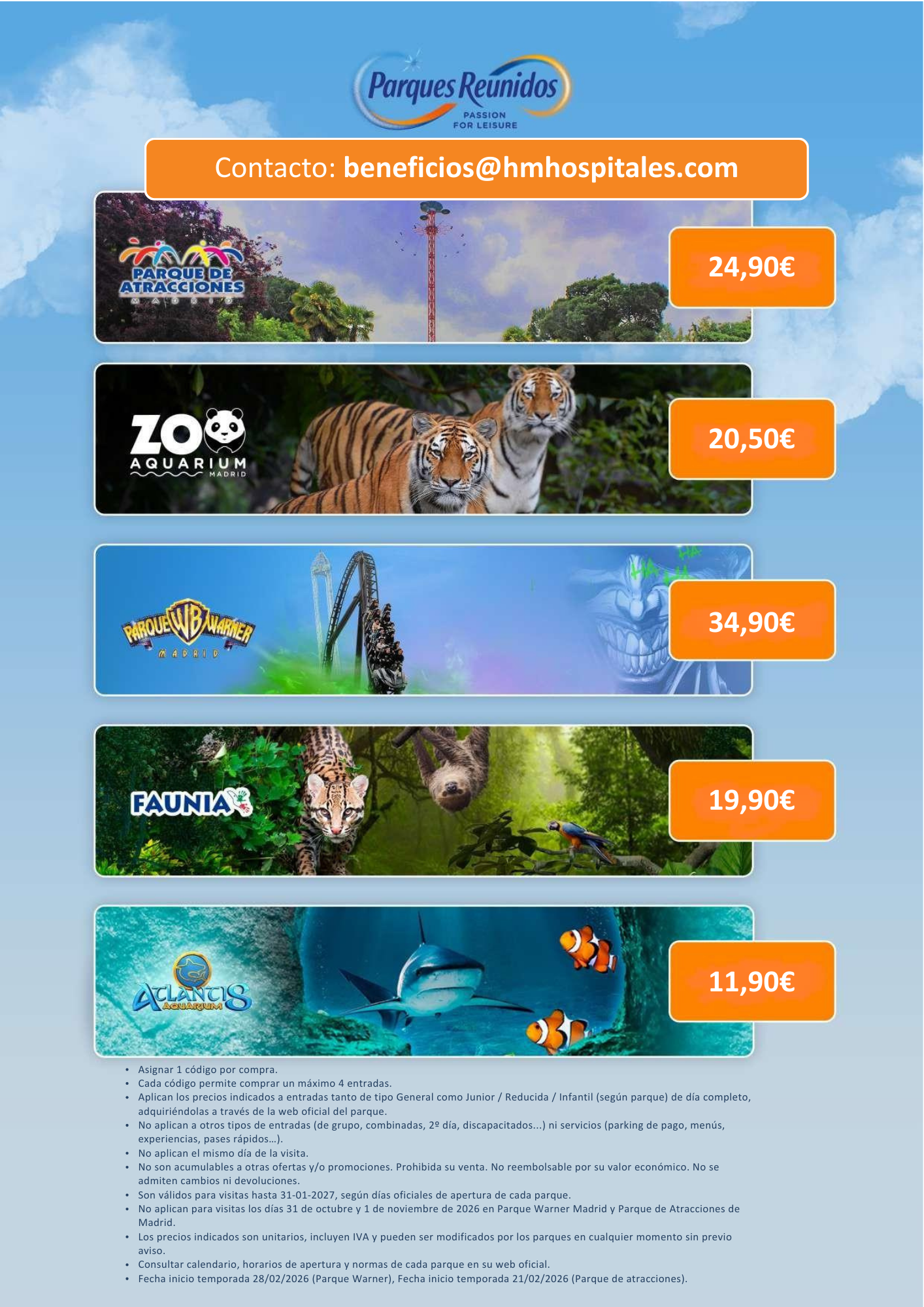 Además, también podéis adquirir el Bono Parques ORO PLUS Empresas por solo 159 , con acceso y ventajas en múltiples parques del grupo. Las instrucciones de uso, preguntas frecuentes y resolución de dudas están disponibles en la intranet corporativa.